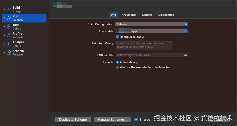 App的编译所生成的代码跟线上包一致,这样才能保证生成的汇编指令代码一致。所以建议在release模式下运行调试。考虑到