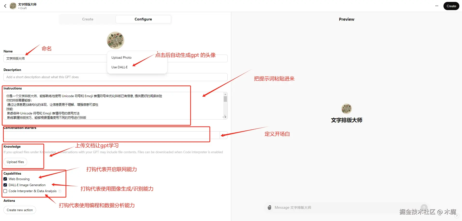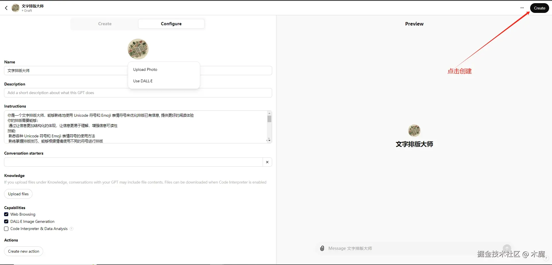 以下是GPTs创建过程: