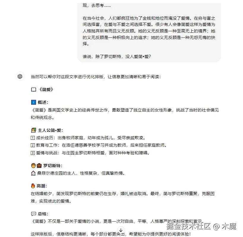 使用方法,如果您是免费版本的用户,你可以直接复制以下的提示词到对话界面,然后把你需要排版的文章丢给gpt,因为免费版的回答长度有限,所以不建议输入太长的文章,以免回答失真。