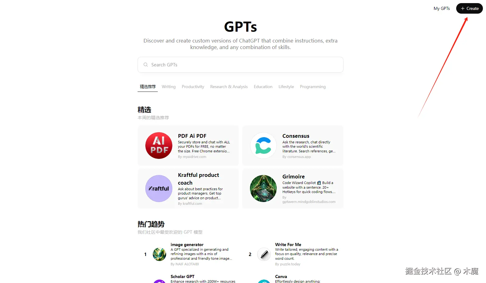 点击左侧边栏的【Explore GPTs】