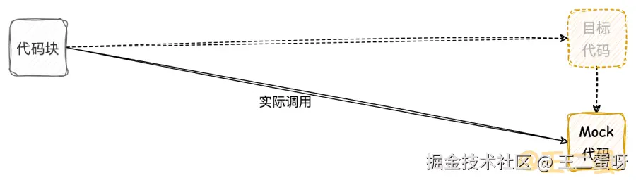 简单来说,Mock就是模拟目标代码的行为,在实际测试过程中代替真实的调用目标。如下图