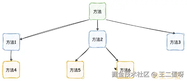 通常,我们编写的方法(或函数)都是由很多方法按照层级组成的,就像这样