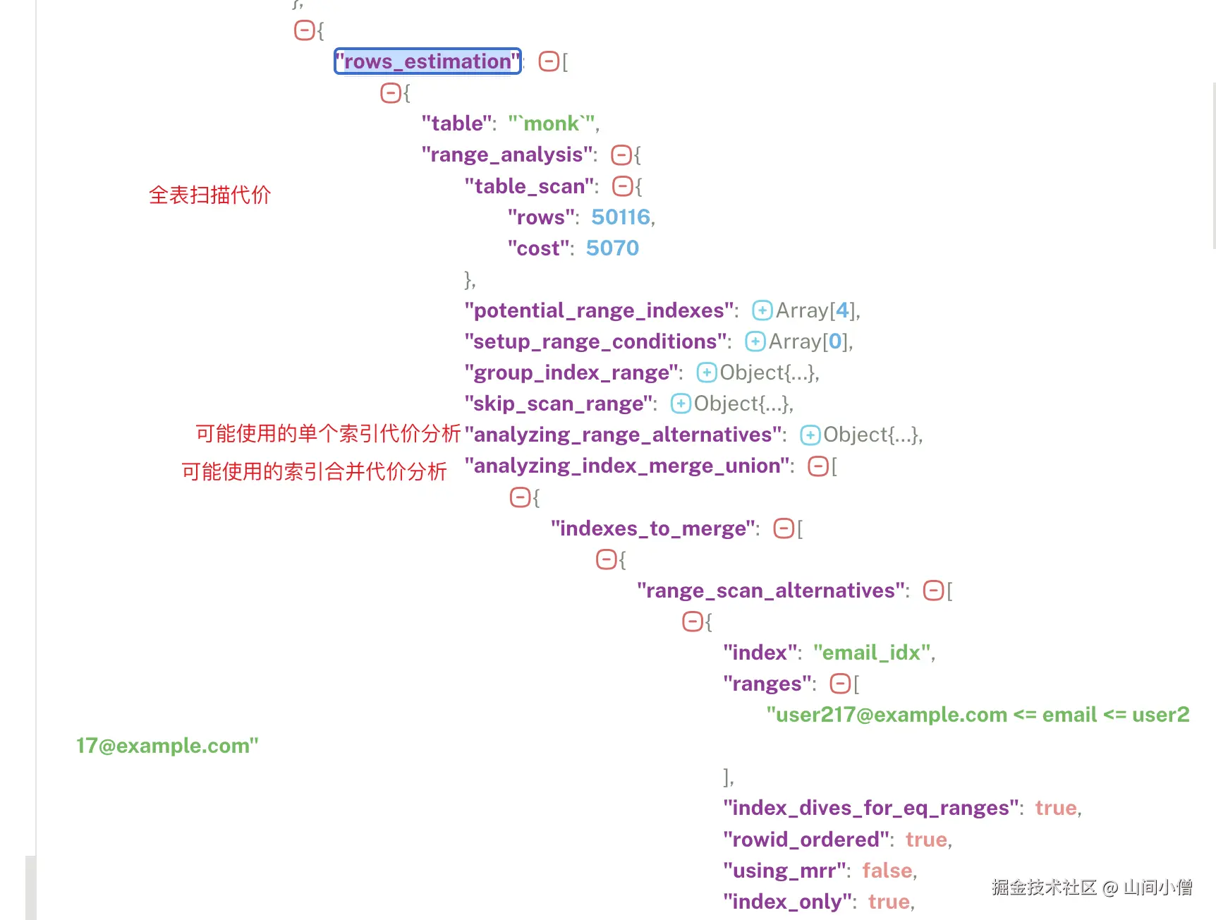 trace不重要,主要是想说明一下,索引合并是要计算代价的,计算代价也是需要成本的。这个说法是来源《高性能MySQL》