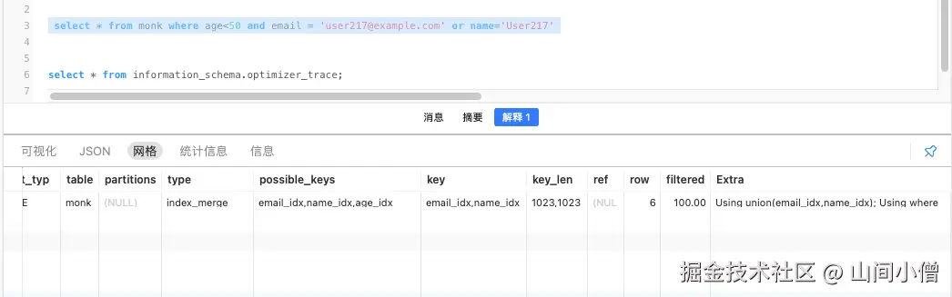 这个怎么说呢你看到英文应该就能猜的大概,mysql是会走多个索引的,然后将多个索引的结果进行合并