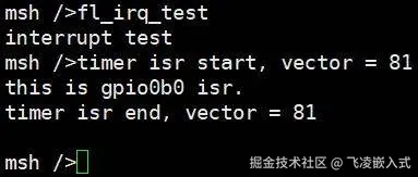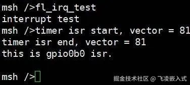 现在执行我们刚刚编写的fl_irq_test这条命令,即可看到效果: