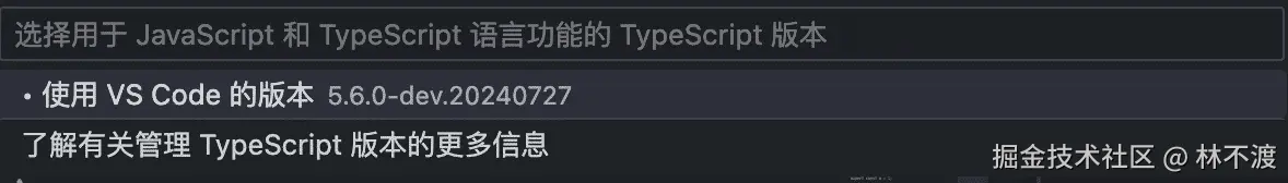 来安装 beta 版本的 TypeScript,或在 VS Code 中安装 JavaScript and TypeScript Nightly ,并选择为项目使用 VS Code 的 TypeScript 版本(cmd + shift + p, 输入 select typescript version),来更新内置的 TypeScript 支持。