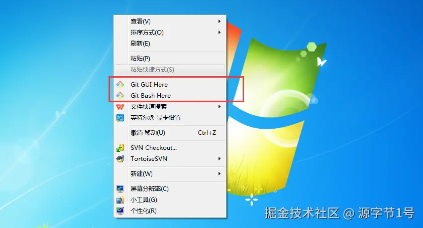 2、安装成功后,点击鼠标右键会有Git GUI Here(图形界面)和Git Bash Here(命令窗口)