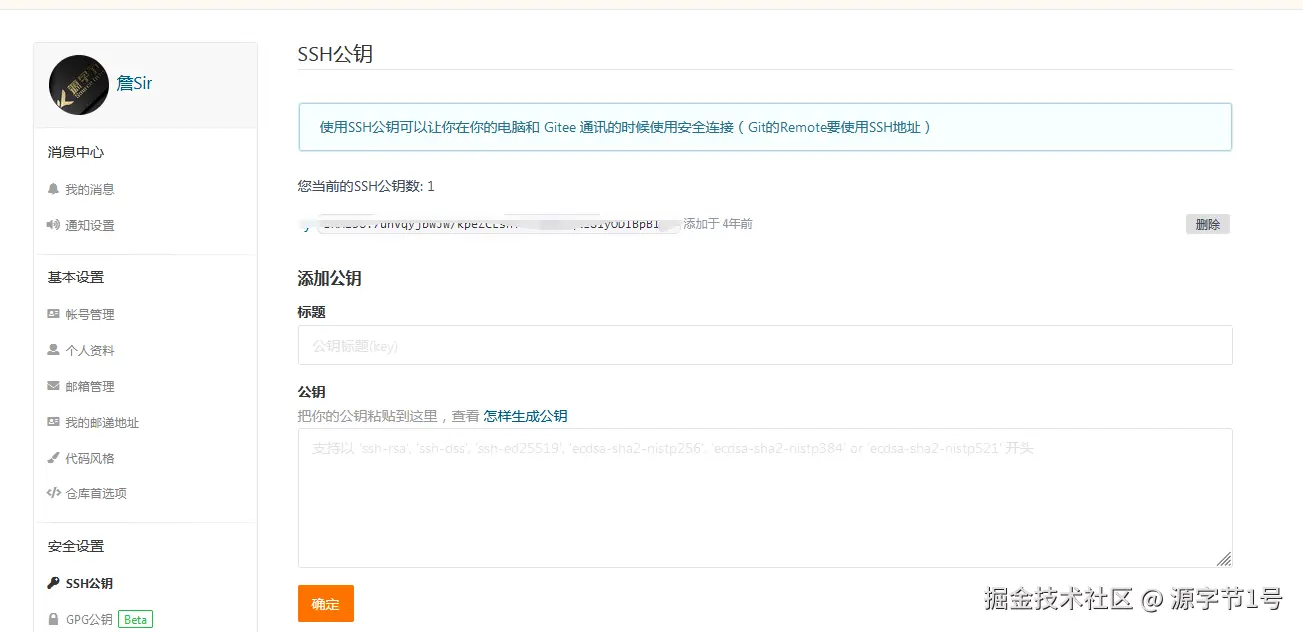 2、随后输入命令查看秘钥,cd ~/.ssh && cat id_rsa.pub,将秘钥复制