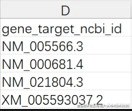 | gene_target ncbi id | 靶基因的NCBI标识 | |