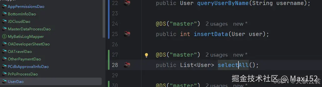 我们首先要做好的是正确的创建出切面类,那么我们就要将切点自定义到mapper层,我的Mapper层如下: