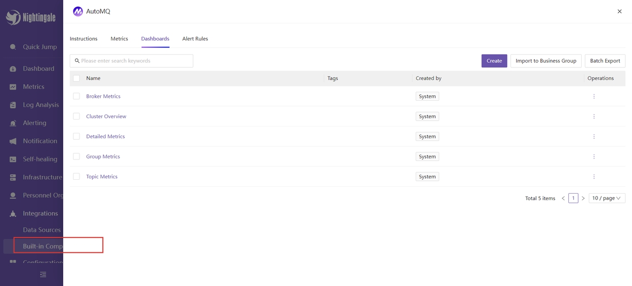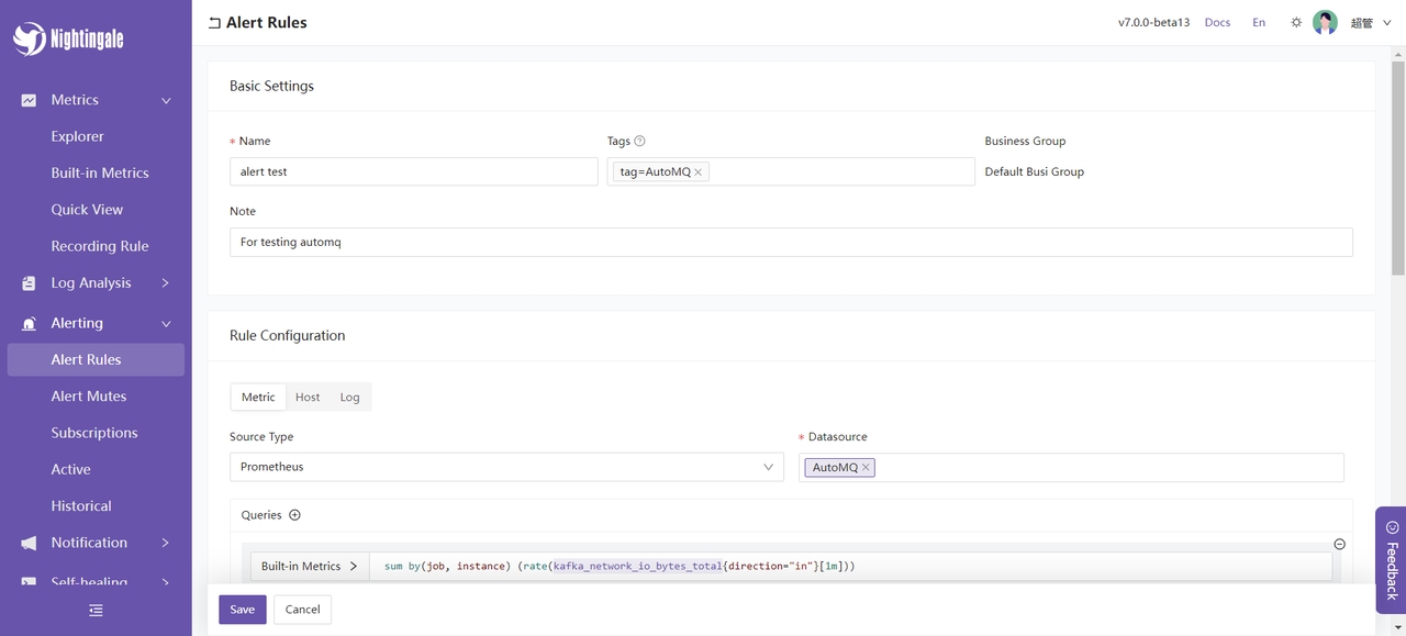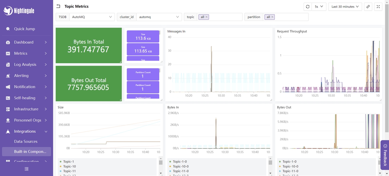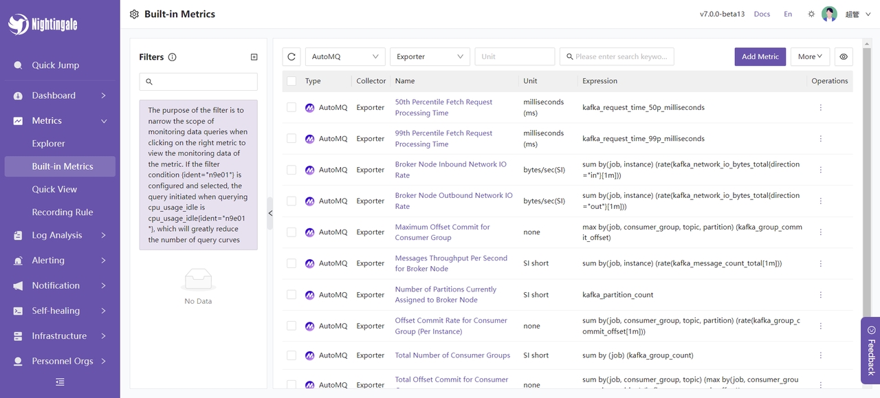 接下来,我将介绍夜莺监控提供的一部分功能,帮助你更好地了解夜莺与 AutoMQ 集成的可用功能。