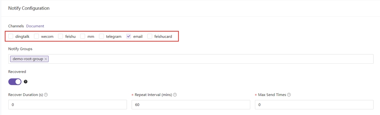 同时你也可以设置发生警报时会通知到的群组: