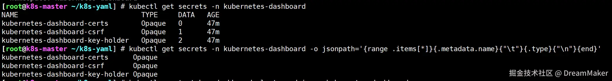 kubectl get secret -n kubernetes-dashboard | grep dashboard-cluster-admin
