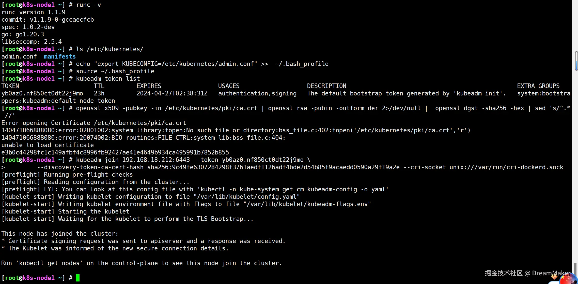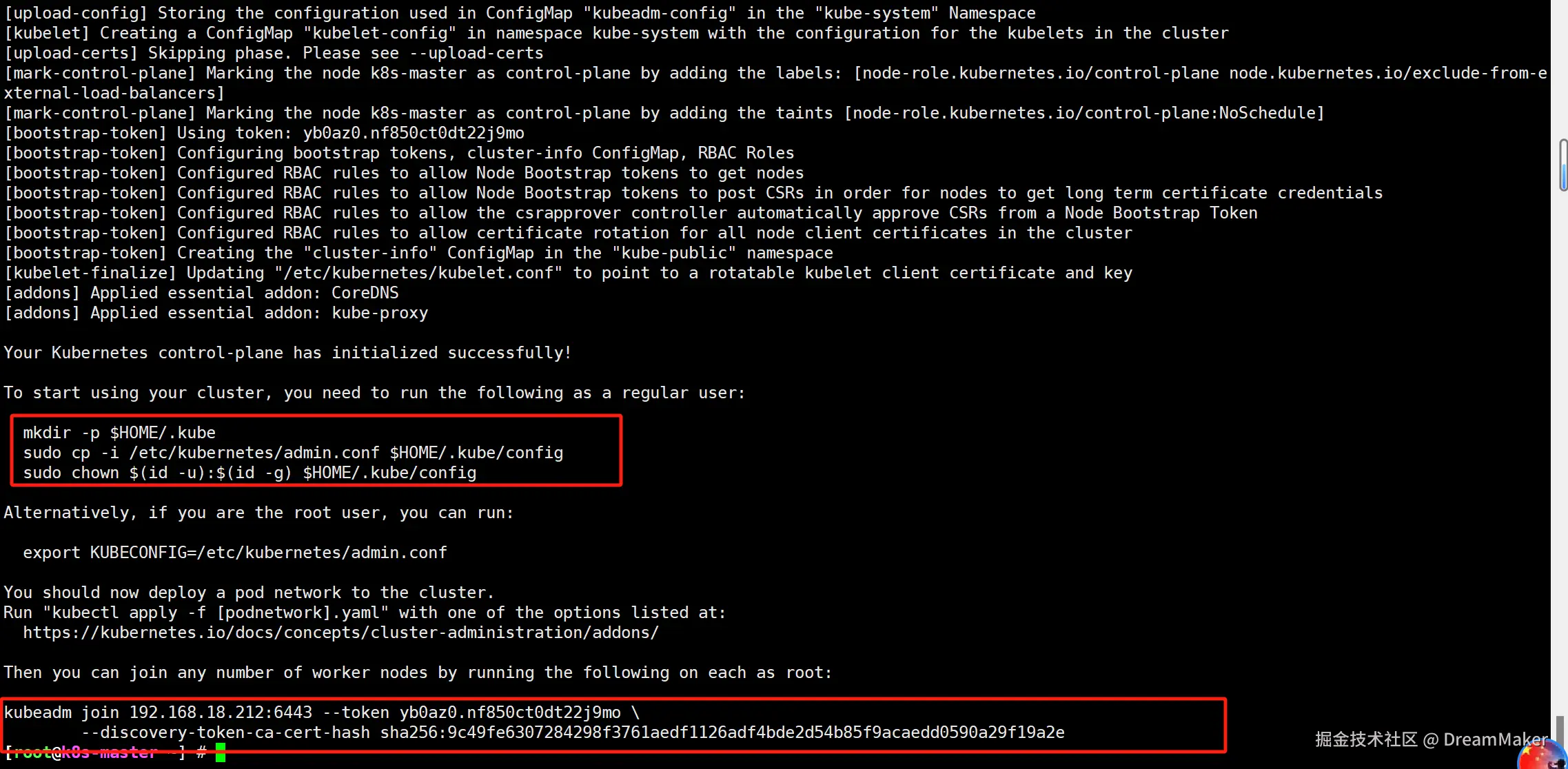 执行完成后会 /root/dashboard-admin.conf 生成文件