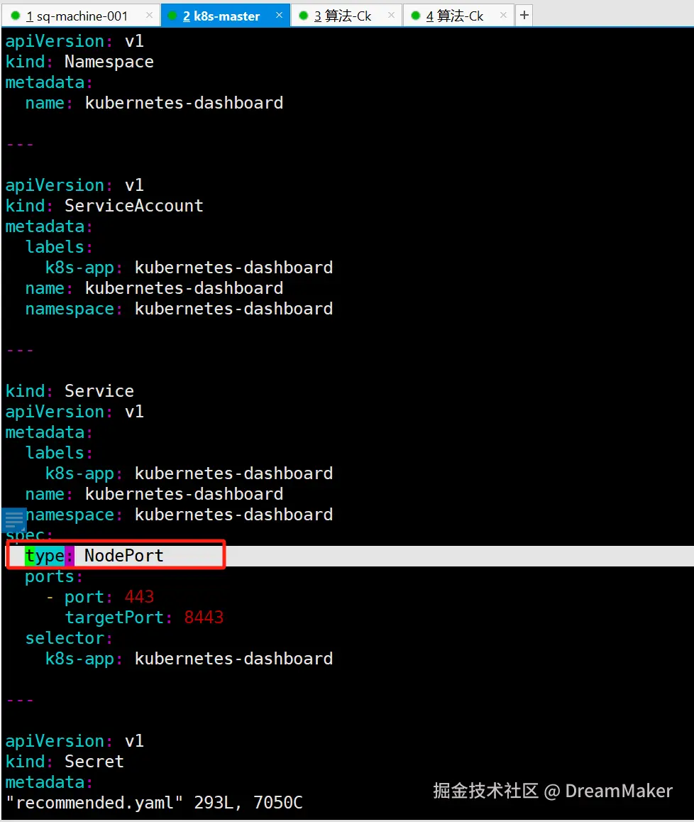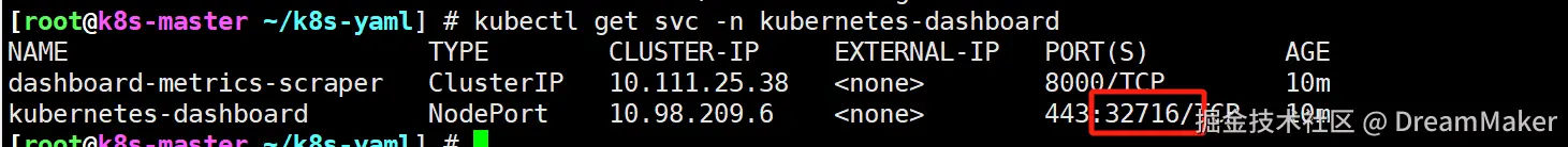 默认 Dashboard 只能在集群内部访问 添加Service 类型: