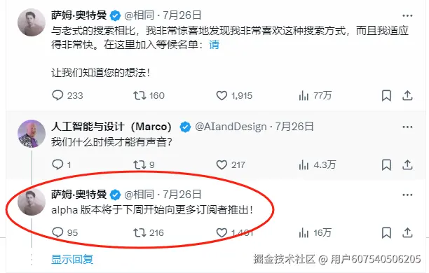 就在刚刚,openai CEO在推特上宣布,将在下周上线GPT-4o的视频通话版本,据悉这个版本将能实现毫秒级的视频识别。能够即时与GPT进行视频交互问答,实属大语言模型领域革命性的更新。而这个版本也将在Chatgpt plus(4.0)用户身上优先推送。