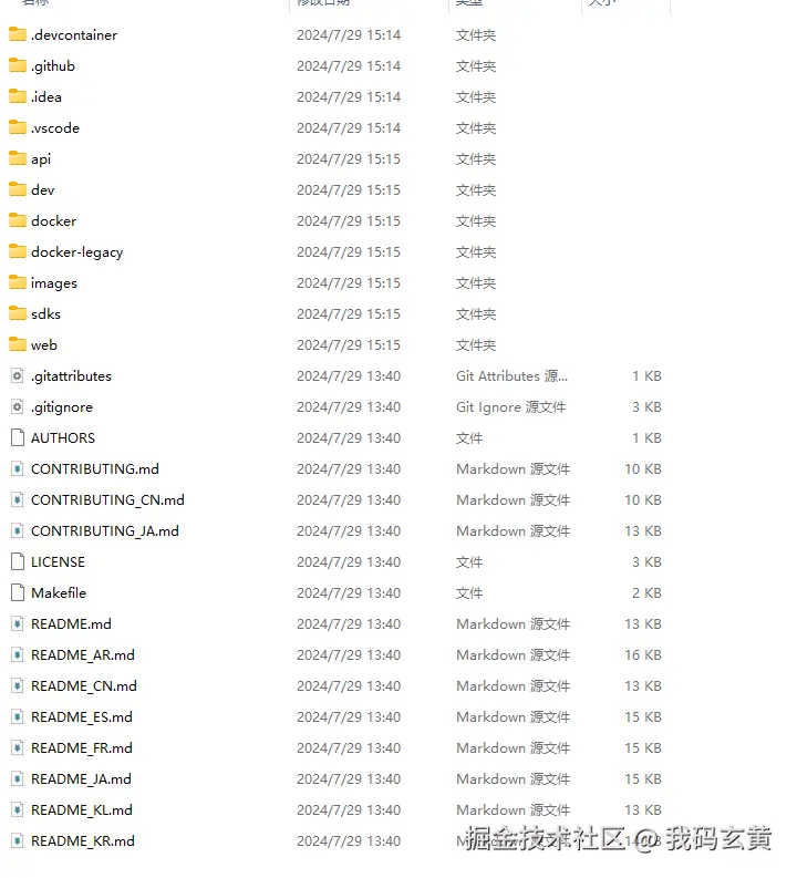然后进入我们刚刚拉取的 dify-main 的根目录,可以看到下面结构: