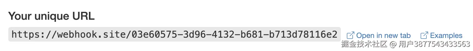 将此 URL 复制下来,就可以作为 Webhook 来使用,此处的样例为 webhook.site/03e60575-3d…
