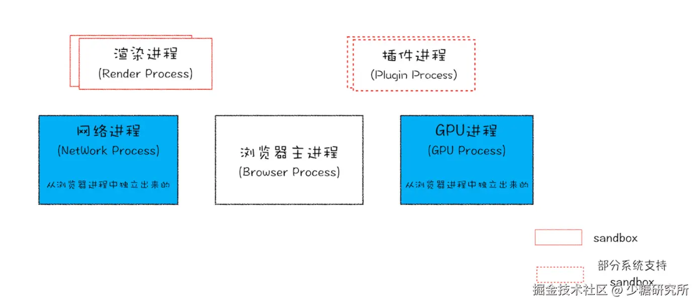 GPU 进程: GPU 最初是为了实现 3D CSS 的效果,现在也用来绘制 UI 界面。