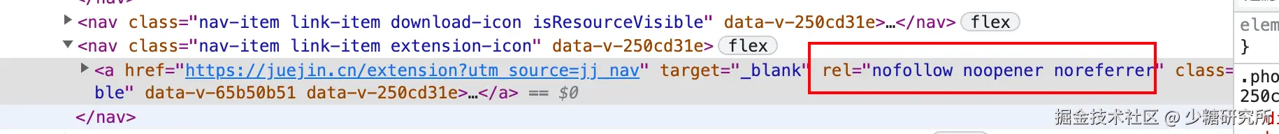 在新打开的页面中,通过window.opener可以获取到源页面的部分控制权,即使新打开的页面是跨域也可以获取部分控制权。当a标签中加入了rel="noopener noreferrer"属性,就会window.opener会为null。这也就是为什么掘金网站的两个标签不共用一个渲染器进程的原因。