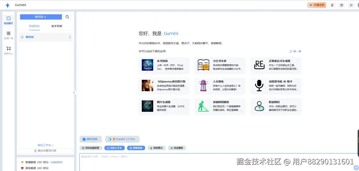 内置了Gemini 1.5 pro 模型,并且国内使用没有网络限制,极大的方便了大家的日常使用。