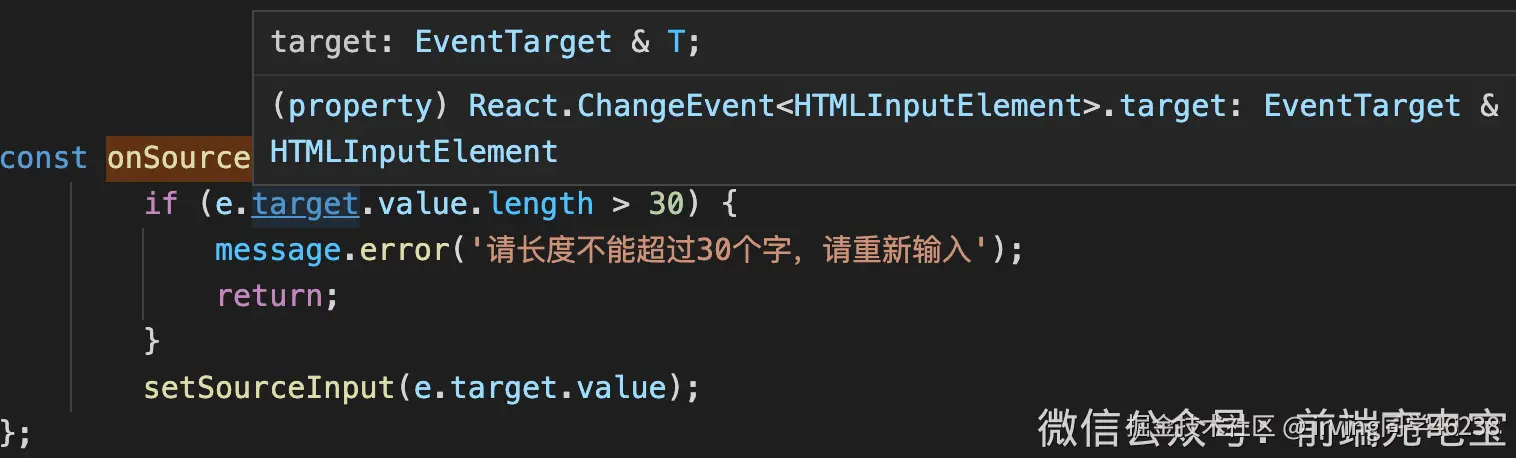 当TypeScript不确定一个联合类型的变量到底是哪个类型时,就只能访问此联合类型的所有类型里共有的属性或方法,所以现在加了对参数target和返回值的类型定义之后就会报错。这时就可以使用断言,将target的类型断言成string类型:
