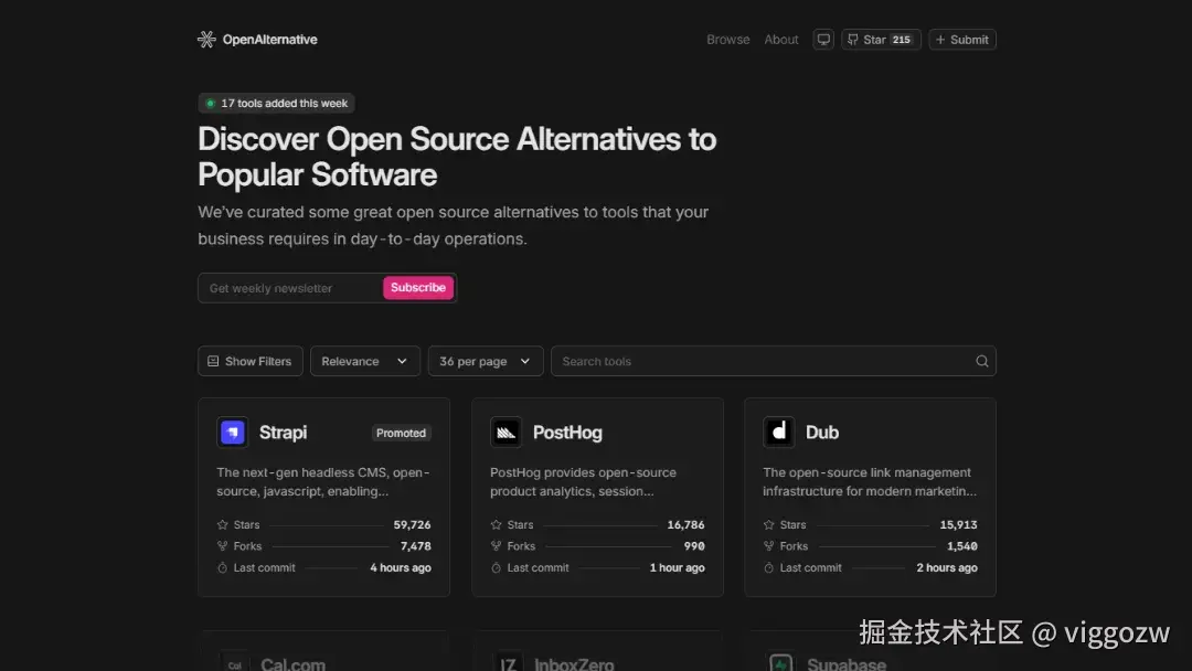 发现流行软件的开源替代品。OpenAlternative Overview