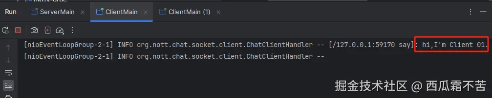 分别编写主方法运行服务端、2个客户端,测试收发信息。