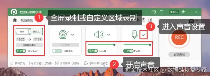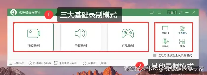 当然,如果你对录屏有更高的要求,想要电脑录屏软件带声音更清晰,那么这款数 据 蛙录屏软件无疑是你的最佳选择,它有更多的录制功能,可以满足您各种复杂的录屏需求。