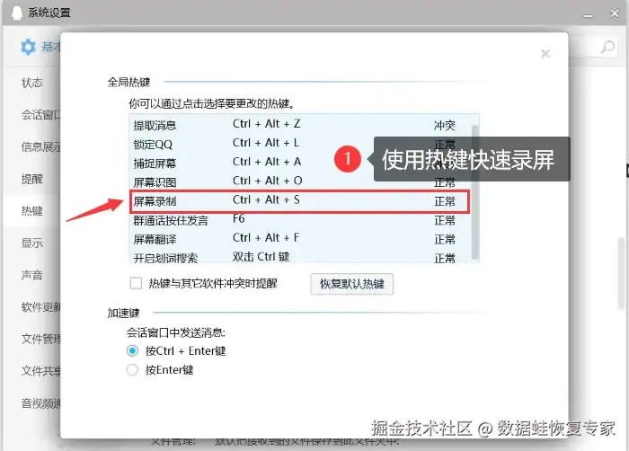 步骤1:登录电脑QQ后,使用热键 【Ctrl+Alt+S】 打开录屏功能。