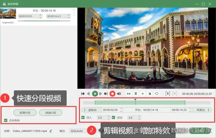 除此之外,数 据 蛙录屏软件还提供了实时视频编辑、添加字幕、剪辑和增加特效等功能,让你的录屏内容更加生动有趣。也同样支持对视频进行后期的处理,例如对视频进行合并、压缩、格式转换等操作,这些强大的功能让你的录屏内容更加丰富多彩。下面就是使用数 据 蛙录屏软件进行电脑录屏的操作步骤: