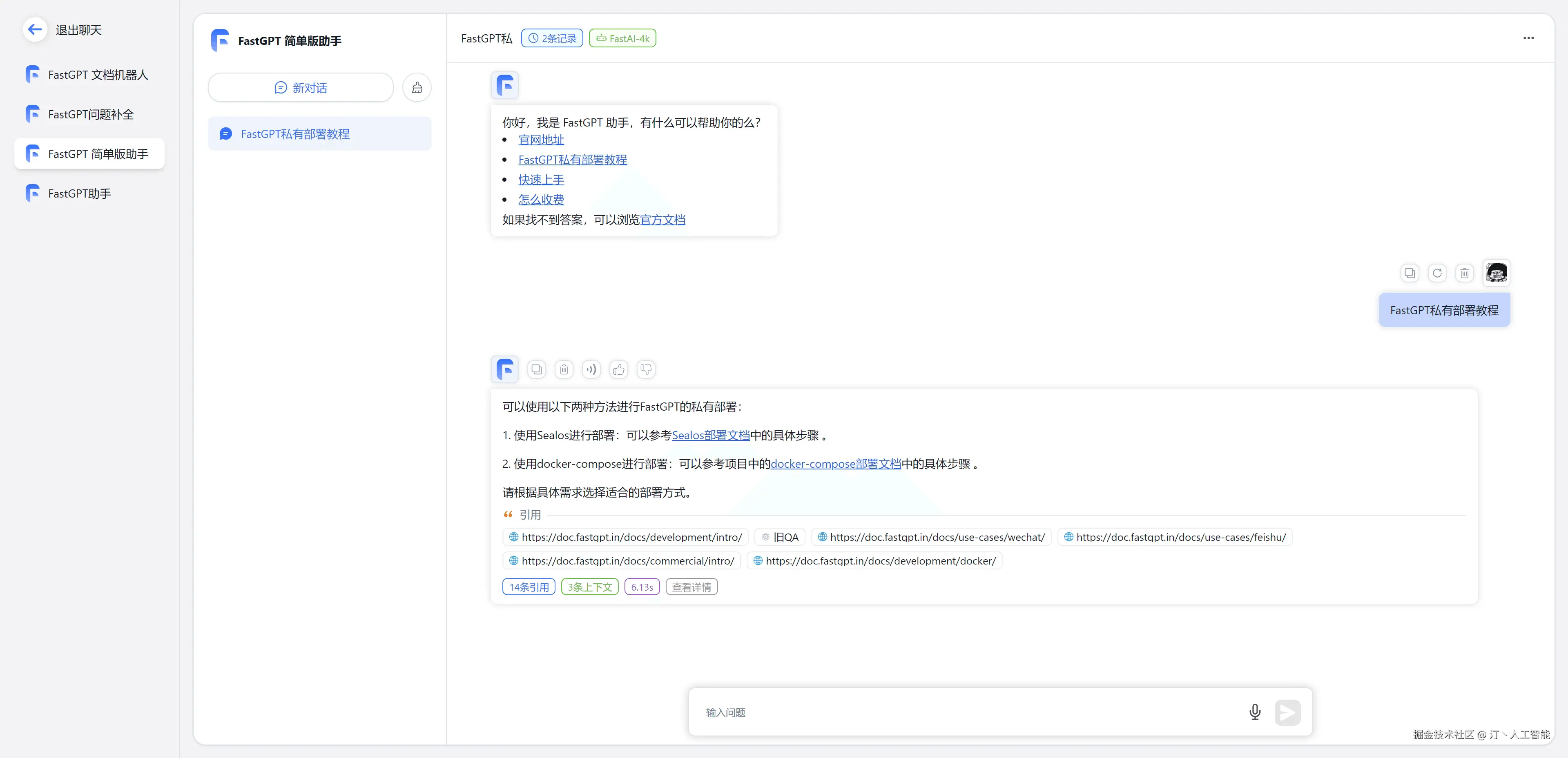 - 聊天中会提供所引用的相应文档内容