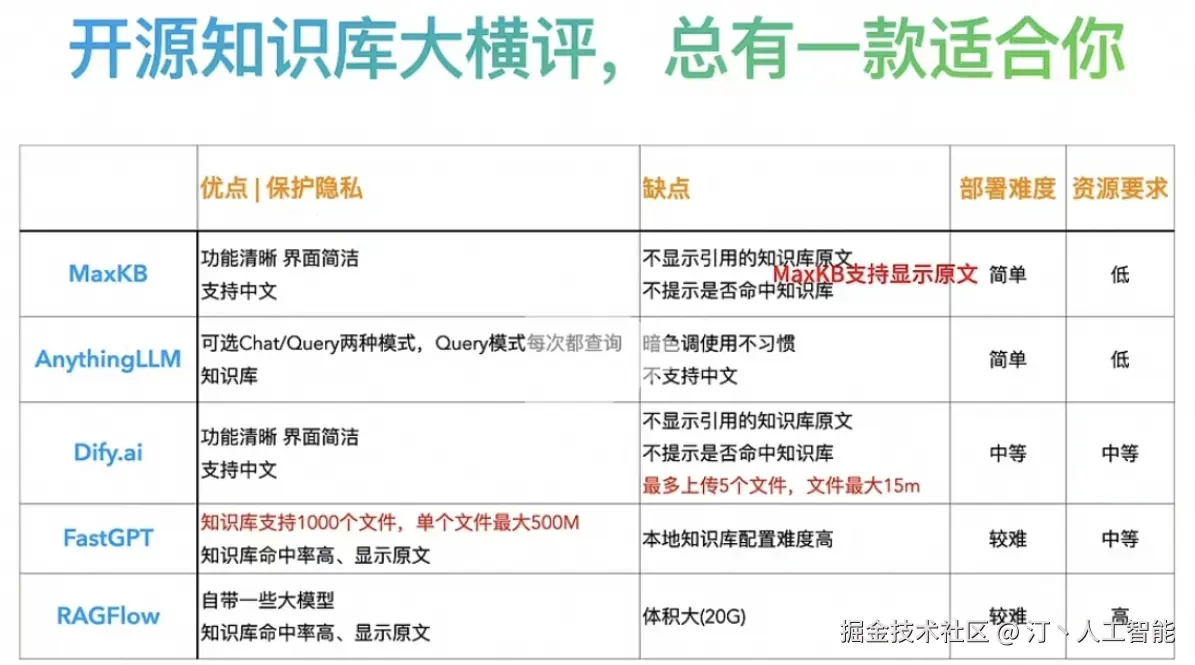 部署难度:MaxKB/Dify的部署过程简单,适合需要快速部署的开发者。FastGPT/RagFlow的部署相对复杂,但提供了更多的配置选项。