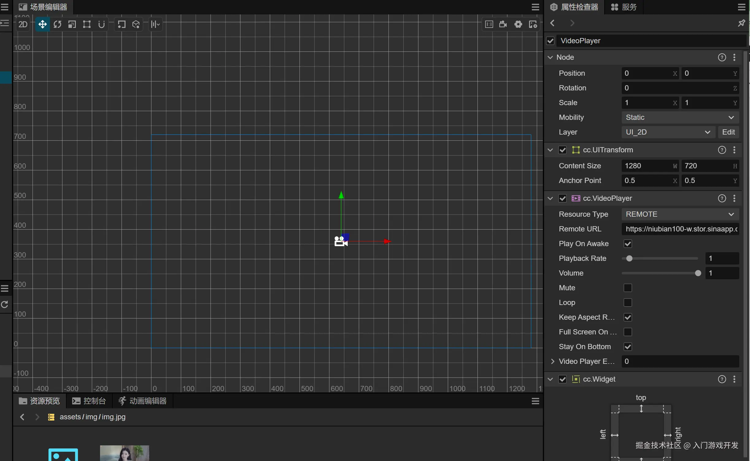 3.x版本和2.x版本的还是有点差别,包括编辑器和API。我发现在3.x版本是Content Size 无法改变视频的尺寸,只能渲染出视频本身的宽高,研究了很久都没有发现哪里姿势不对切换到2.x就能直接设置宽高尺寸,可以很好的铺满手机屏幕。3.x版本的引擎无奈之下只能将游戏的尺寸设置为视频的尺寸大小。
