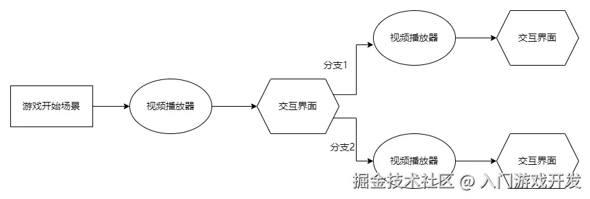 大概流程就是这样,每一个视频搭配一个交互界面。合适的做法是制作一个预制组件,将逻辑高度抽象。交互界面提供一个List选项,每个选项对应一个播放地址,这样就可以串联整个故事。在交互界面可以添加额外的逻辑,比如角色的亲密度计算等等。