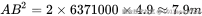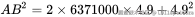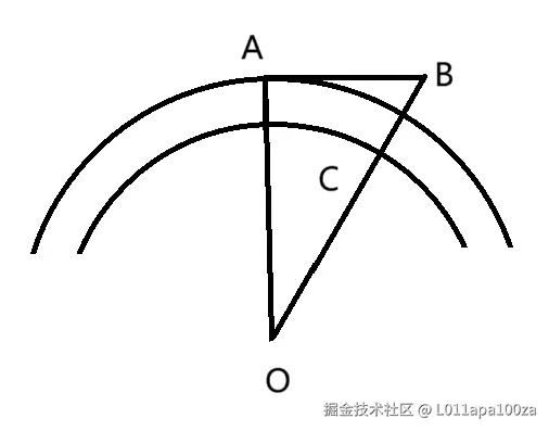 OA 和 OC 近似地取为地球的平均半径6371000m,BC 为自由落体在第一秒飞过的路程,即