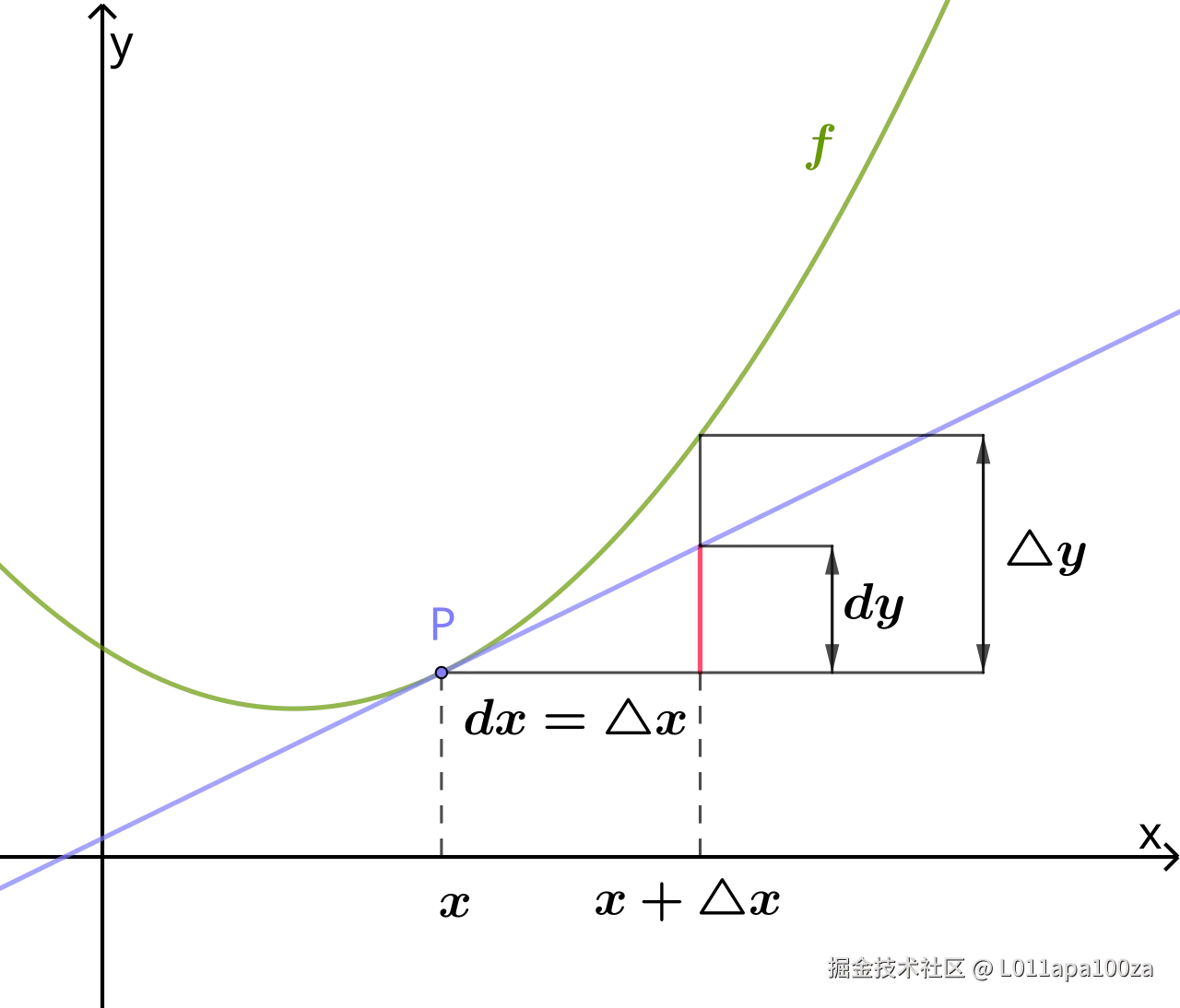 这点我们可以通过微分的几何意义来解(释: