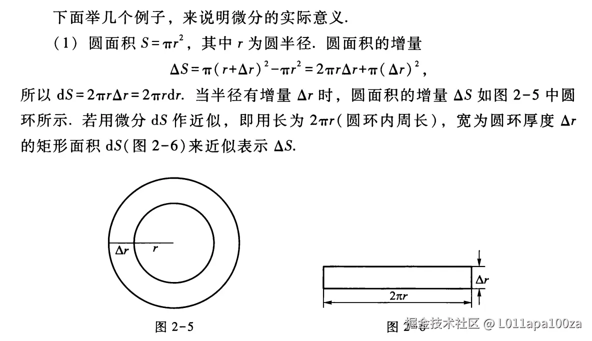 那么按照上面教材的解释,在不引入微分的情况下,上面计算圆面积增量的式子应当很难计算,这时候我的疑问就冒出来了——哪里难算了?