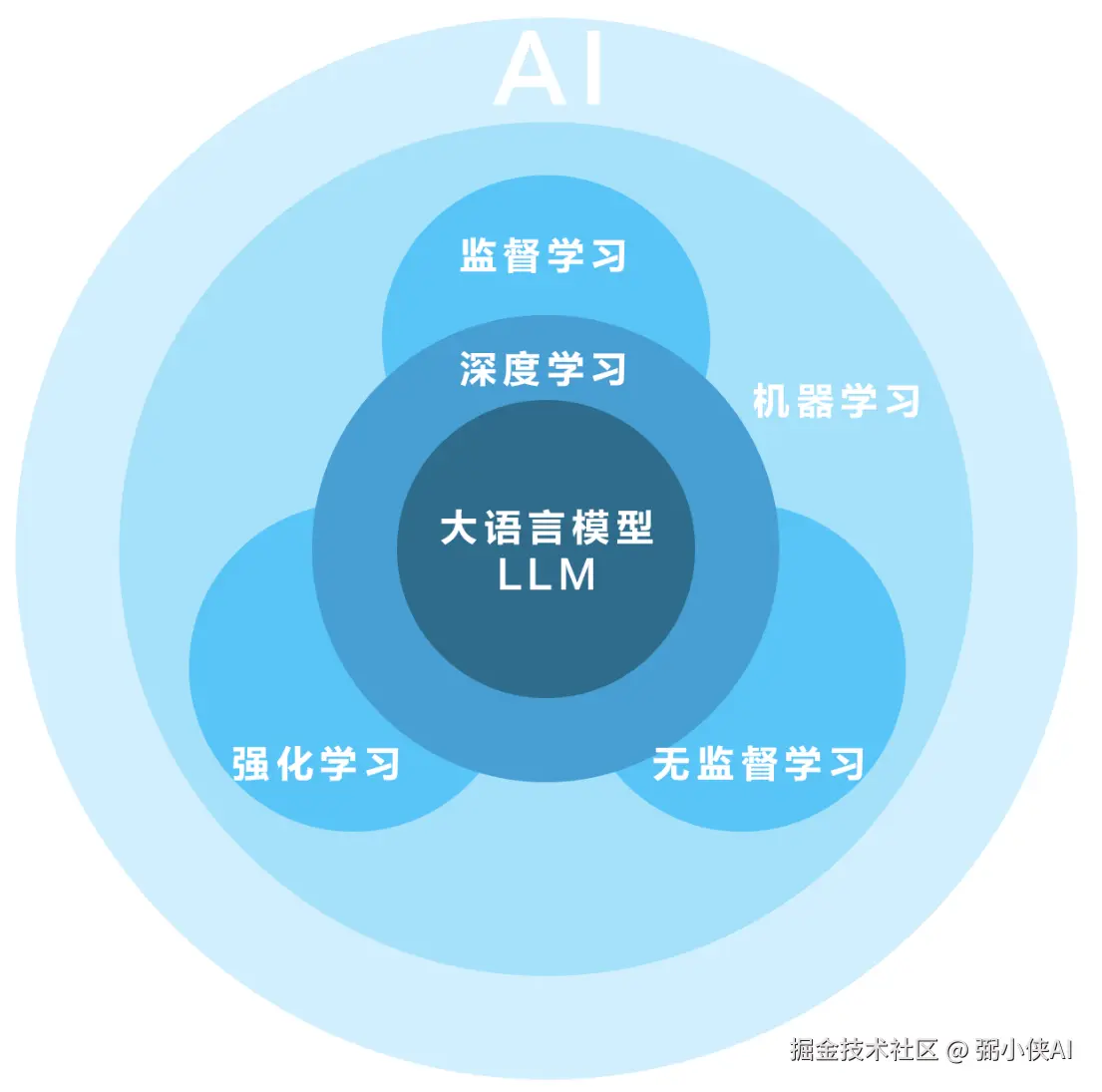 好了,上述知识对于小白可能有点多,但是小侠真心希望大家都能理解并梳理清楚关系。我相信,看完小侠这期视频的伙伴,最起码对AI有个比较全面的认识,以后再遇到AI相关的知识或者课程推荐时,不至于一脸懵逼,啥都不知道,被当韭菜割了。