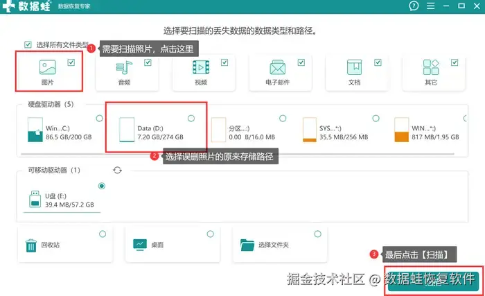 策略三:使用专业的电脑数据恢复软件恢复误删照片