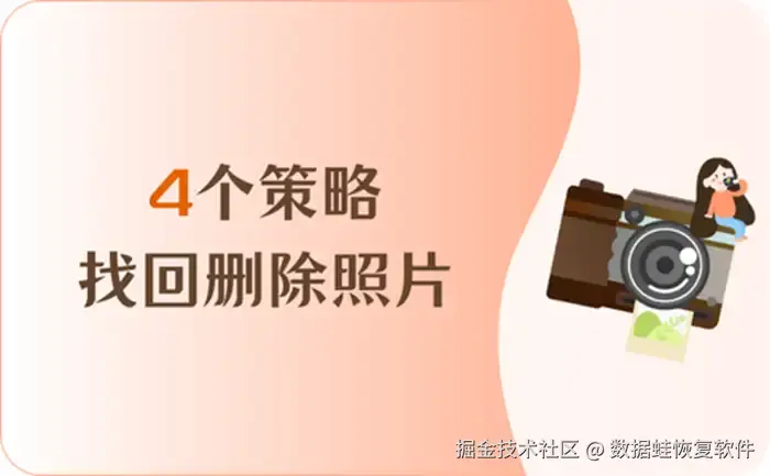 意外删除照片也是有方法可以一个人去尝试解决问题的。怎样找回删除的照片?试试这四个策略能不能帮助你实现照片恢复的目标。需要注意的是,如果旧的照片数据被新录入的数据覆盖的话,那就真的是无法找回丢失的数据。所以一旦误删照片,马上采取行动是最好的第一步。照片被清理了怎么找回来?这四个策略希望对你有所帮助。
