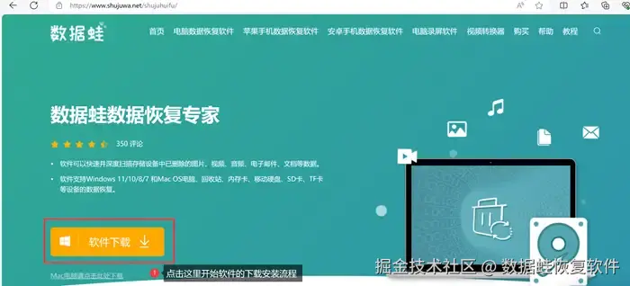 步骤1: 进入数据 蛙的官网,在官网的指示下,完成数据 蛙恢复专家的下载安装。