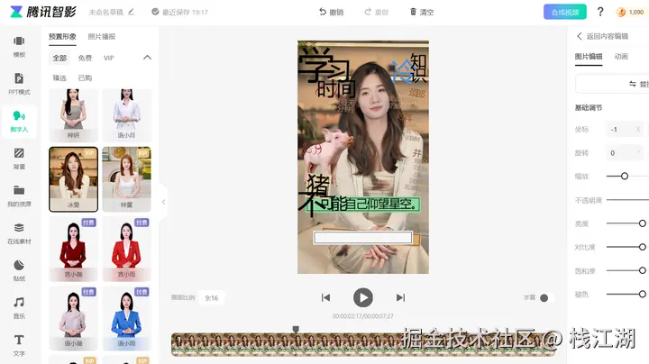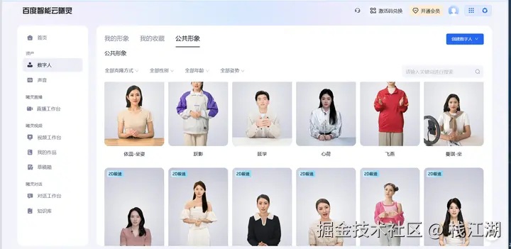 除了创建自己的形象外,平台还提供了一些公共的数字人形象供创作使用