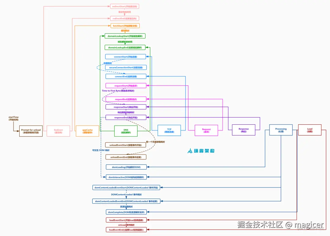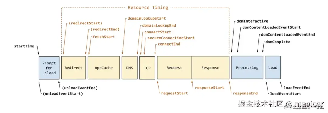 - TCP连接耗时、首字节到达时间、response响应耗时、DOM解析渲染的时间、TTI、DCL、L等可通过performance.timing获取
