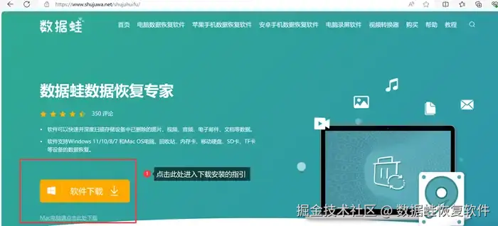 第1步: 在官网上下载【数据 蛙恢复专家】,按照官方网站的指引完成软件的下载安装。数据 蛙恢复专家支持多个设备和系统,客户可以自行根据实际情况选择合适渠道进行下载。