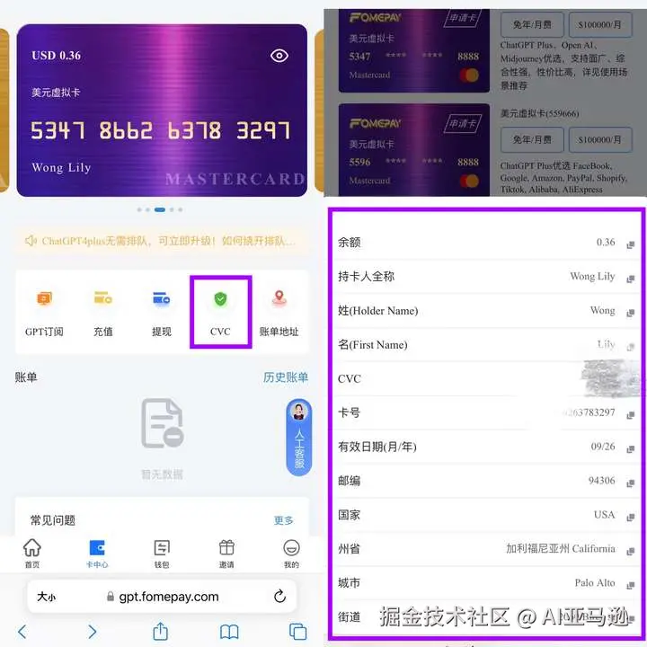 按下图操作即可办卡,升级GPT4.0的话,开5347开头的mastercard就行