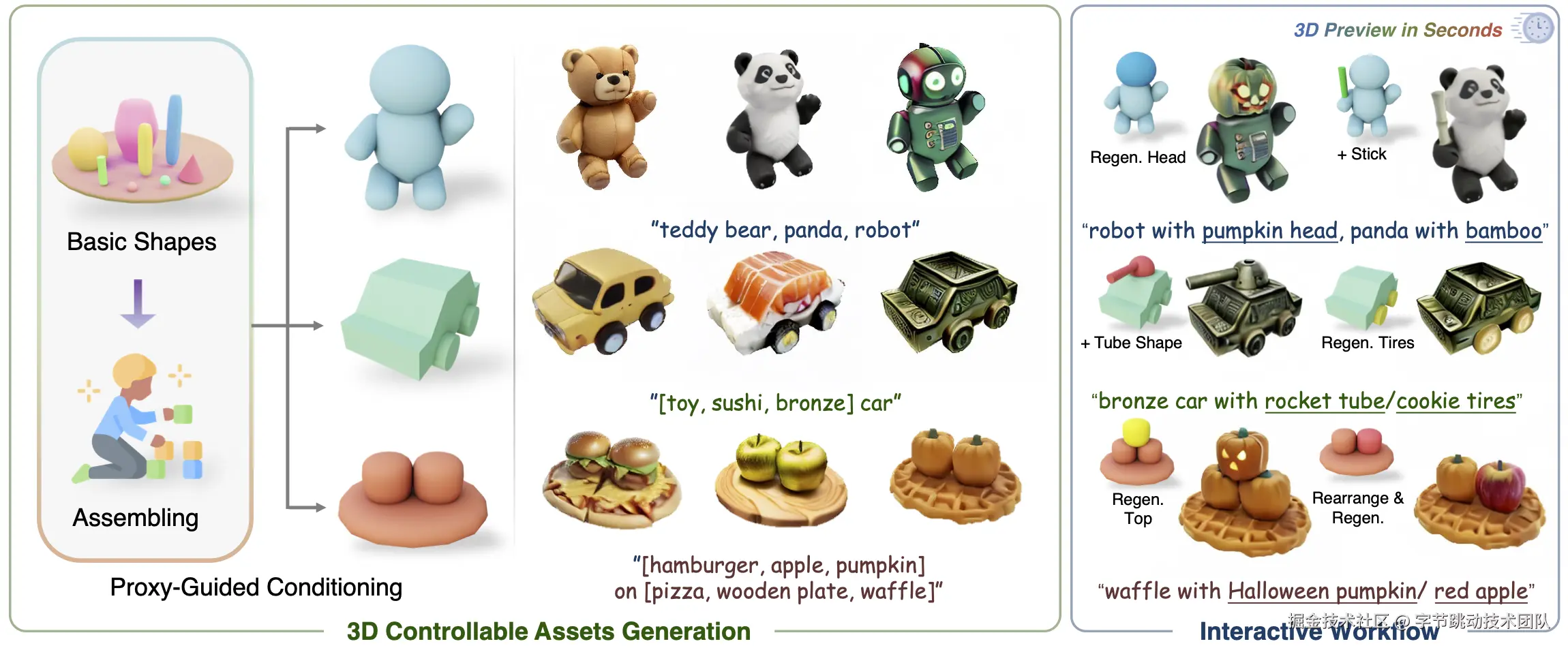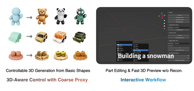 那么,是否有可能像小孩子搭 积木 一样,用户只需通过交互式地拼接基本3D形状, 就可以实现可控的3D物体生成呢?