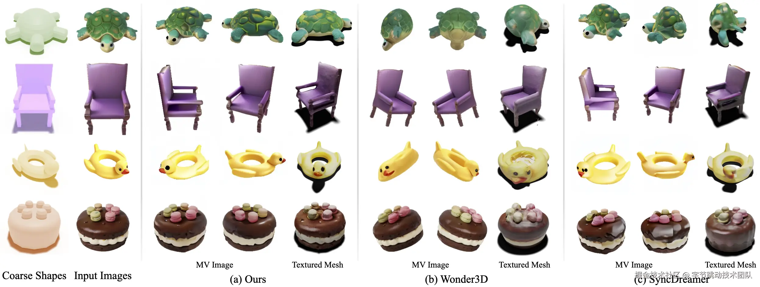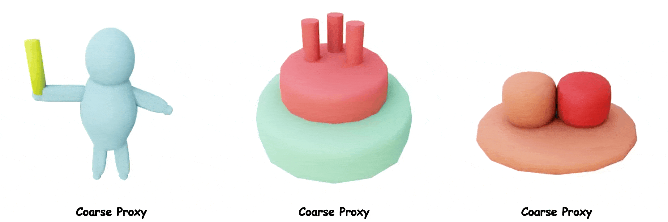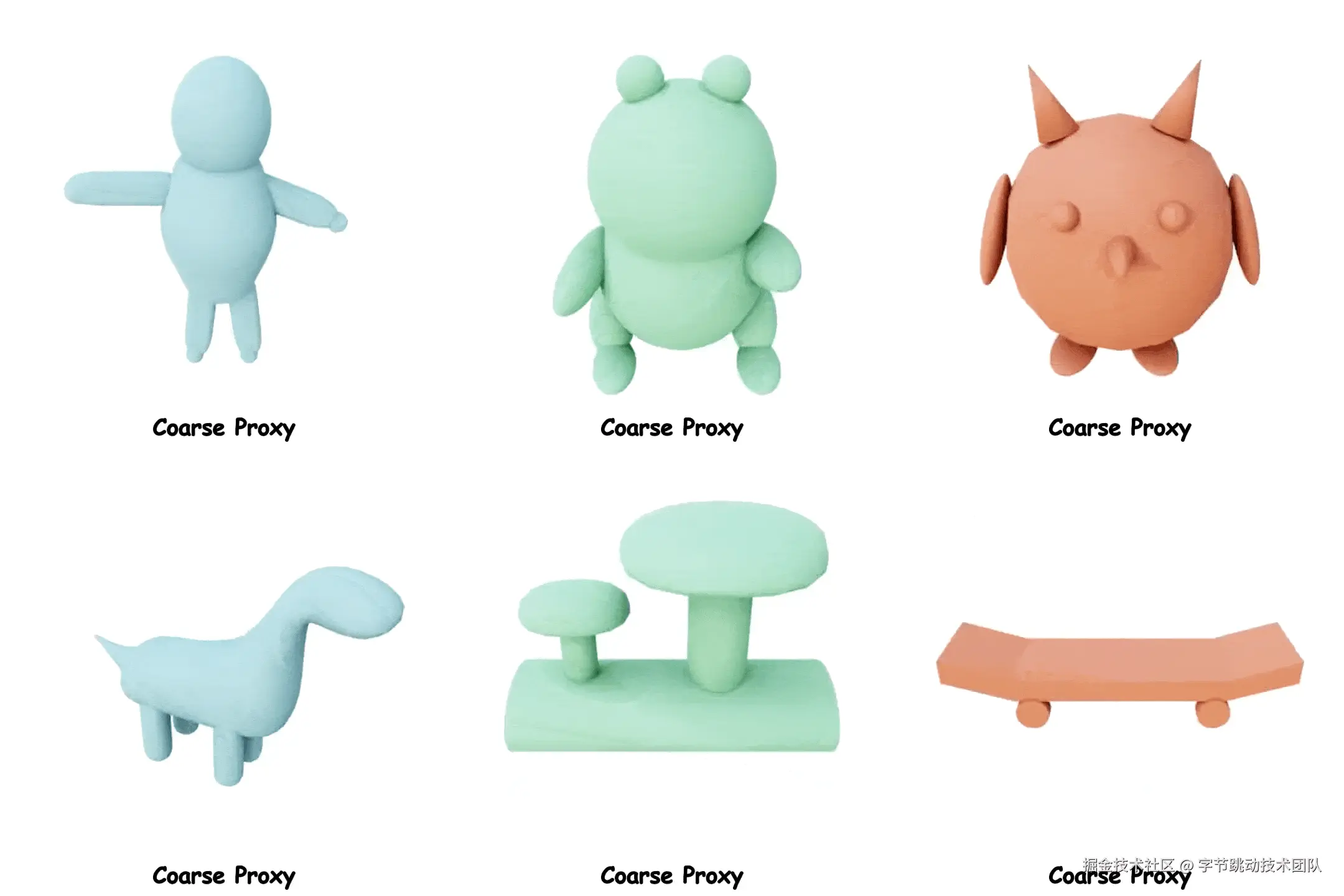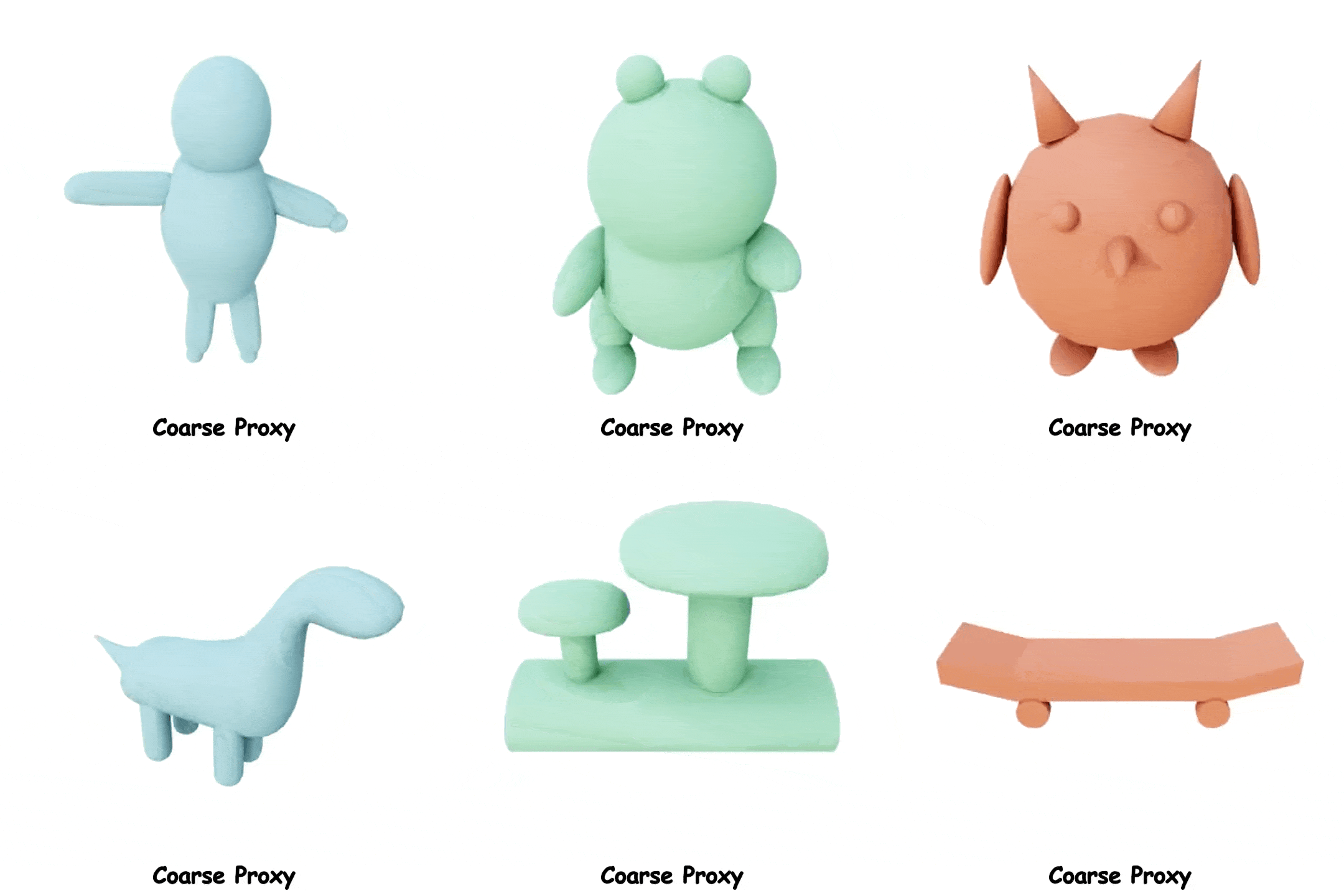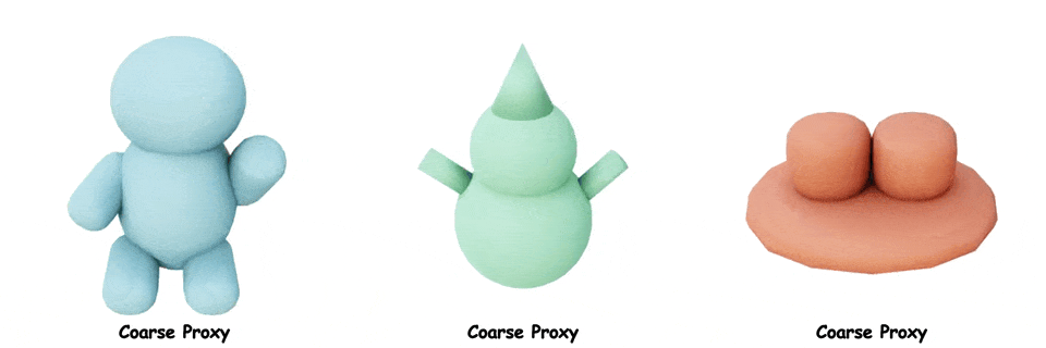 这里展示了更多使用Coin3D进行可控 3D 生成的示例,其中我们使用粗模型作为控制条件,生成精细带纹理的物体。