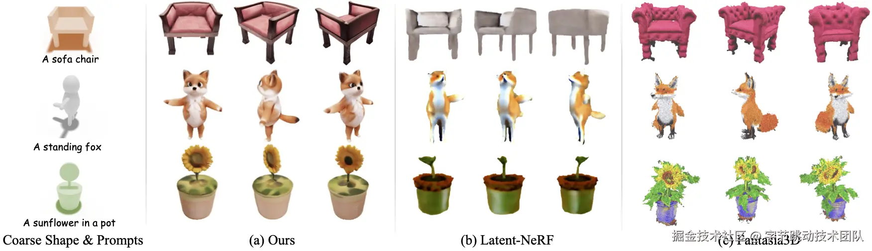 同时,我们也将Coin3D与基于图像的3D生成方法(Wonder3D 和 SyncDreamer),以及提供了可控3D生成接口的方法(Latent-NeRF和Fantasia3D)进行了对比进行比较,可以看到Coin3D的生成结果能更符合用户的预期。