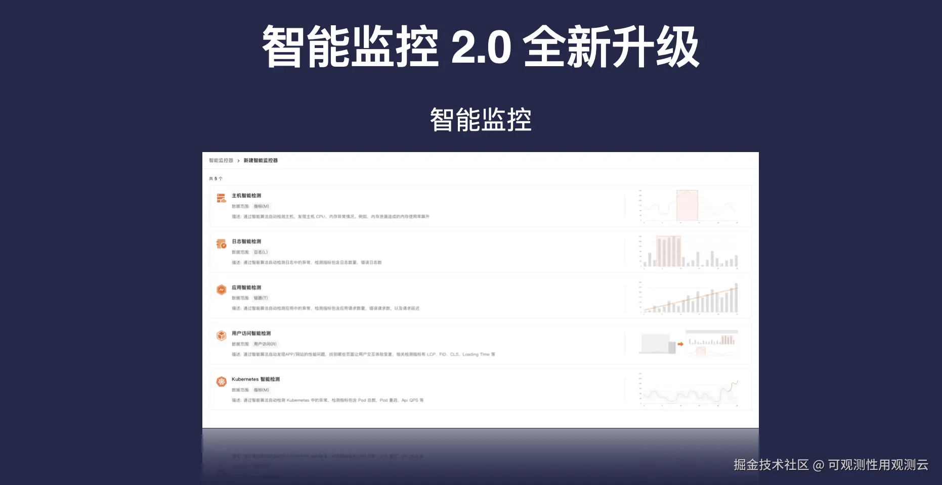 - 监控告警的智能化升级:智能监控2.0升级,组合检测,告警策略精细化管理,提升问题发现与响应效率。